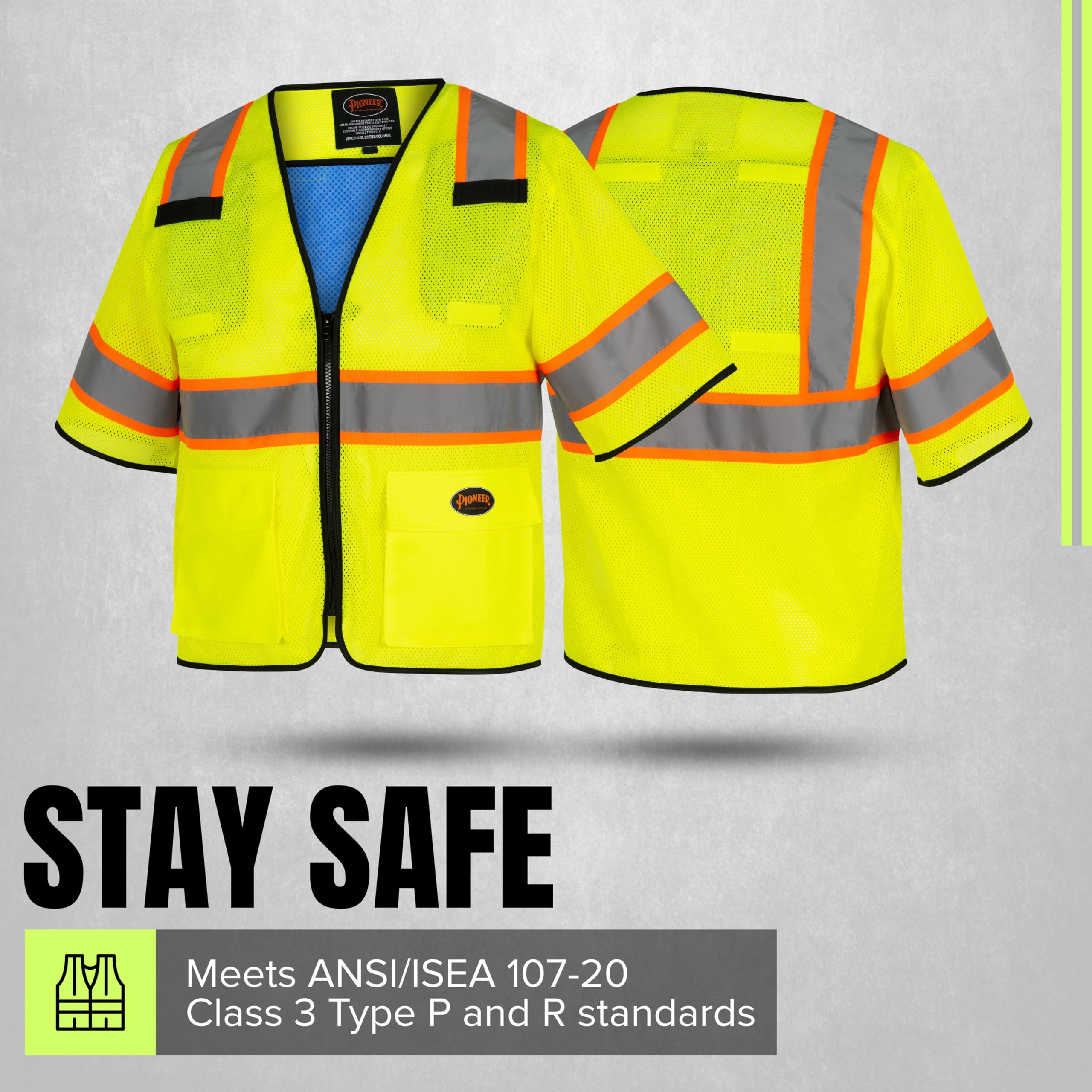 - COOLING SLEEVED SAFETY VEST – Pioneer Class 3 Cooling Vest keeps men & women safe from heat stress & fatigue. Ideal for roadway construction, survey crews, and utility or line workers