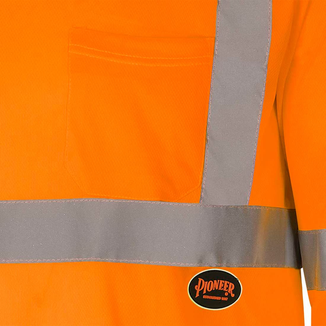 Pioneer Hi Vis Safety T Shirt for Men - Long Sleeve with Pocket- Reflective Tape - High-Visibility T-Shirt – Dry Wick, Lightweight Tee – Orange or Yellow/Green