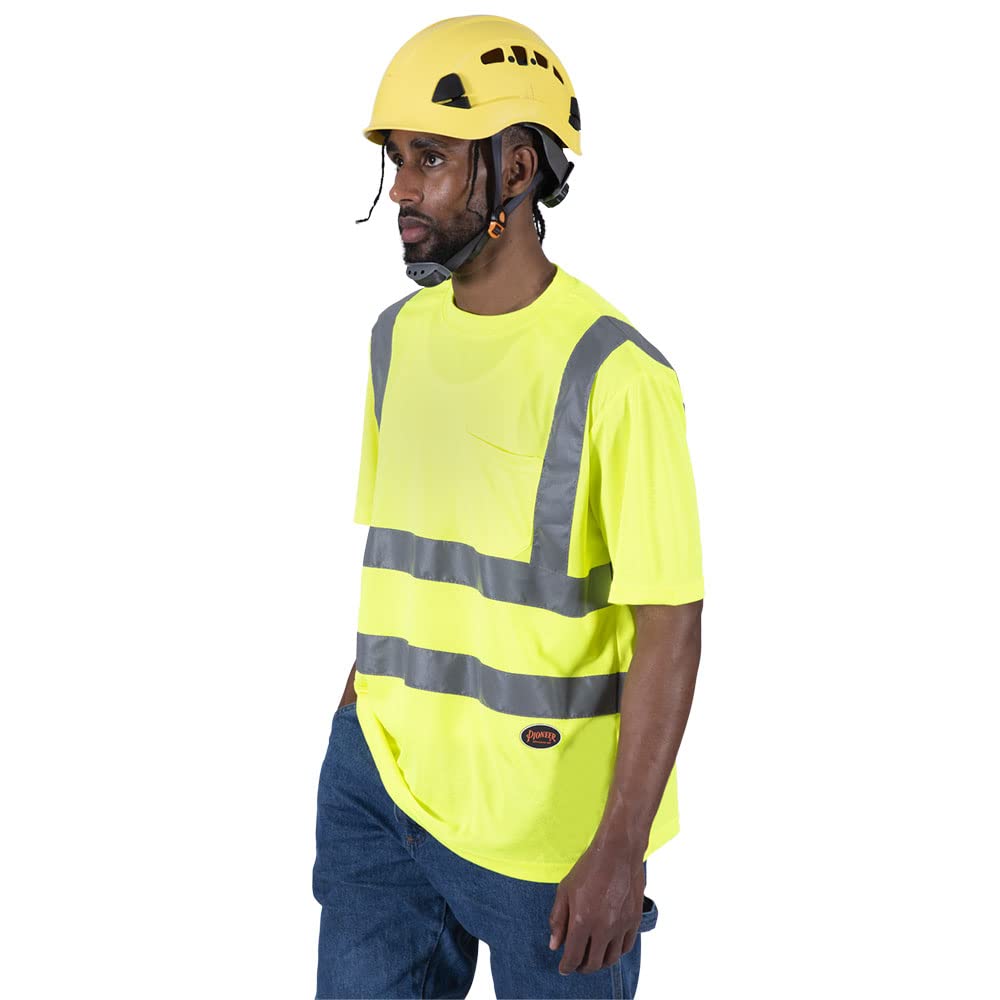 Pioneer Hi Vis Safety T Shirt for Men - Short Sleeve with Pocket- Reflective Tape - High-Visibility T-Shirt – Dry Wick, Lightweight Tee – Orange or Yellow/Green