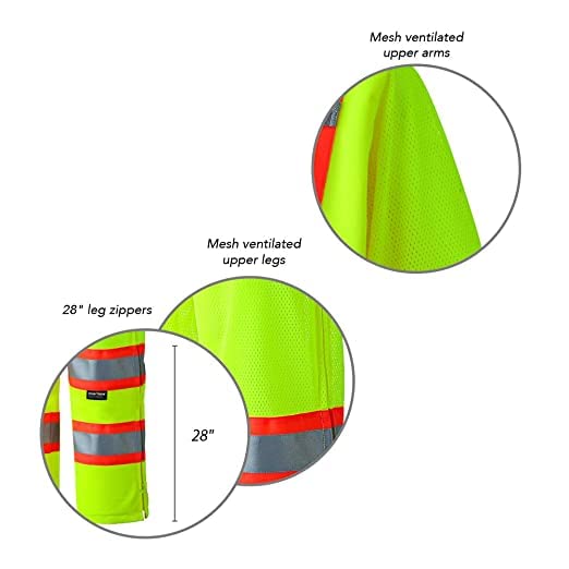 Pioneer High Visibility Polyester Knit Traffic Safety Coverall with Mesh Ventilation Panels, Reflective Tape, Leg Zippers, Yellow/Green, Unisex, M, V1070160U-M