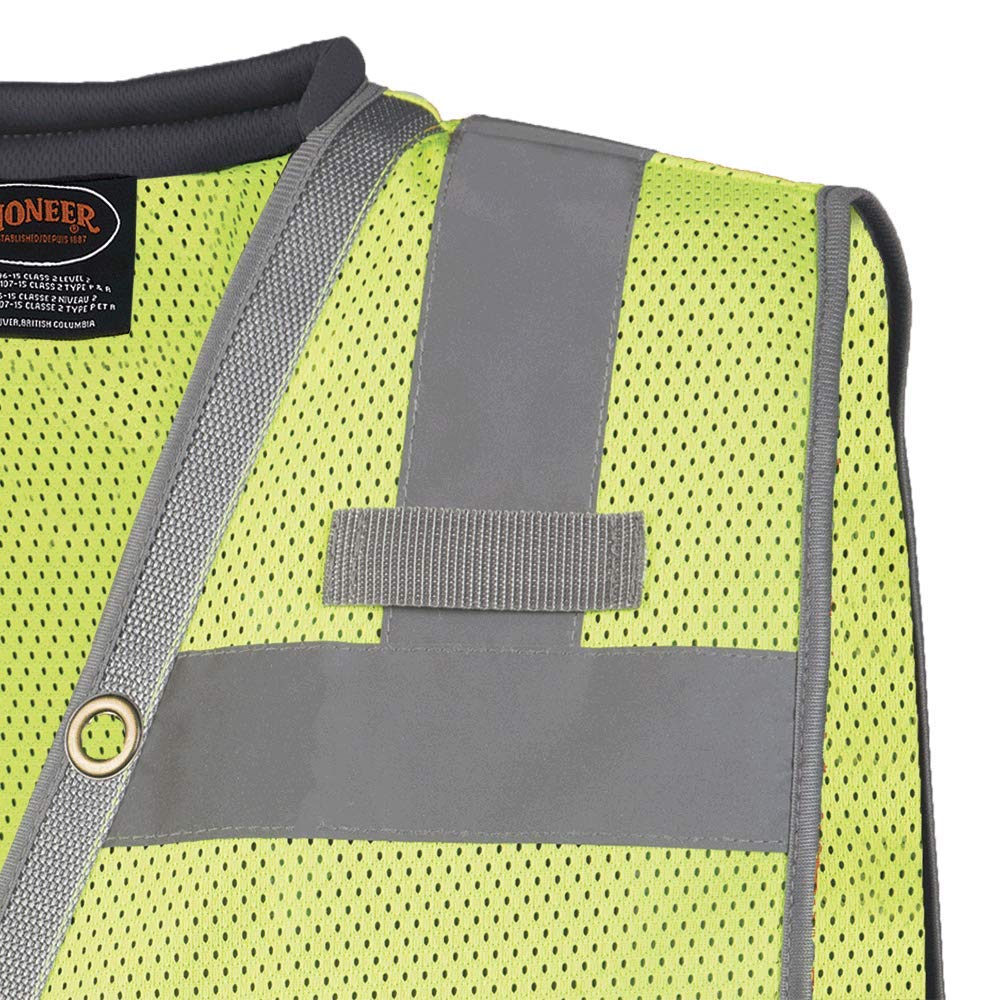 Pioneer Surveyor Safety Vest for Men – Hi Vis Reflective Neon, Cool Mesh, Padded Collar, 11 Pockets, Zipper, 2” Tape – Orange or Yellow/Green, 4X-Large